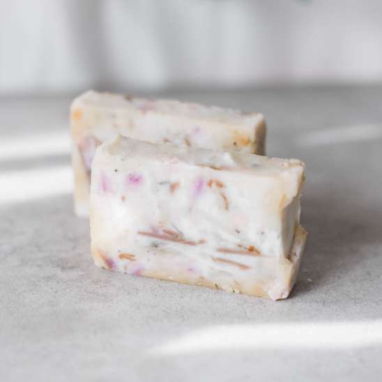 コールドプロセス製法でじっくり熟成した敏感肌にもやさしい石けんです。繊細に香るハーブの恵みで毛穴汚れやくすみのもととなる古い角質を洗い流し、クリアな素肌へ導きます。洗浄によりニキビを防ぐので、脂性肌や混合肌の方にもおすすめです。